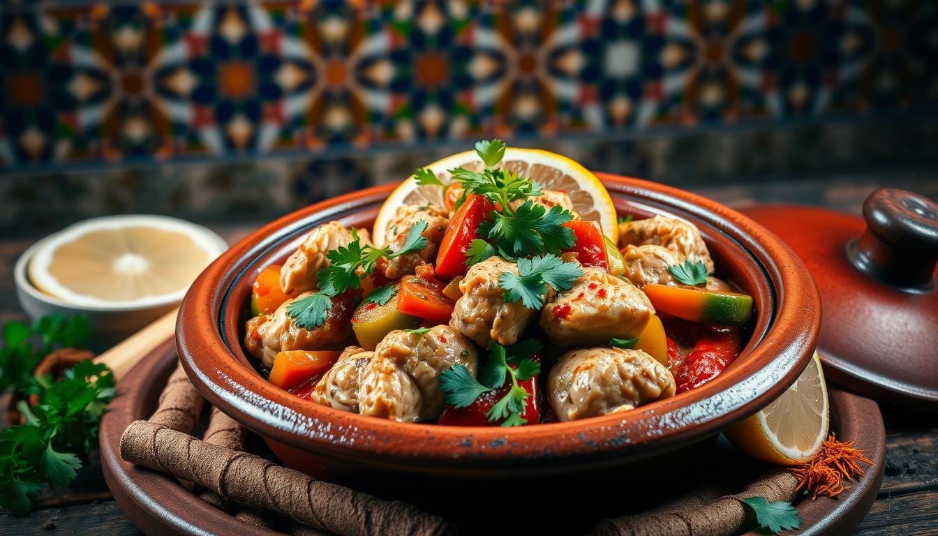 Explore the world of North African flavors with tagine pot cooking. This tradition turns simple ingredients into amazing meals. The tagine is more than a pot; it’s a key to a rich cultural experience perfected over centuries.