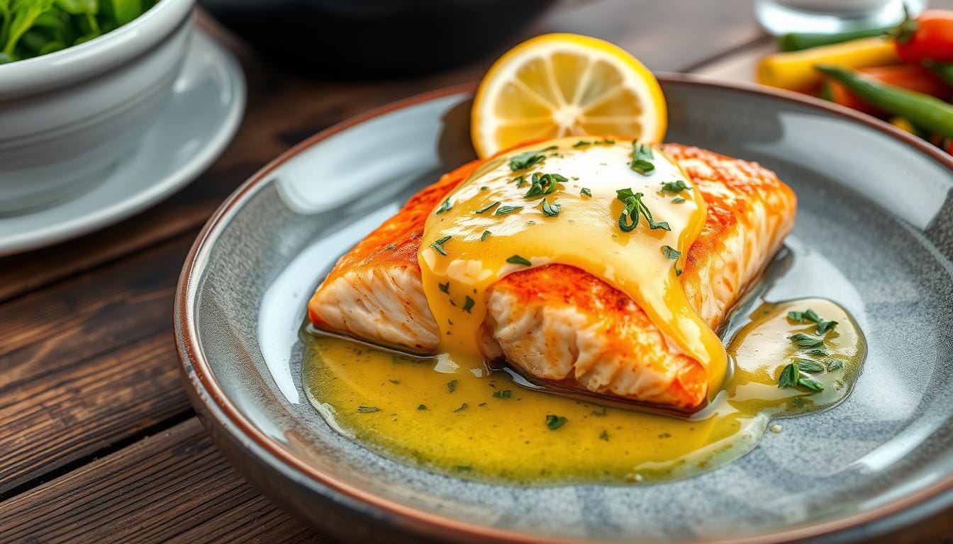 Picture this: a perfectly cooked salmon fillet with a golden crust. Inside, it’s juicy and tender. The butter sauce adds a tangy lemon and garlic flavor. It’s more than just a meal; it’s a celebration of fresh, simple ingredients.Key Takeaways
